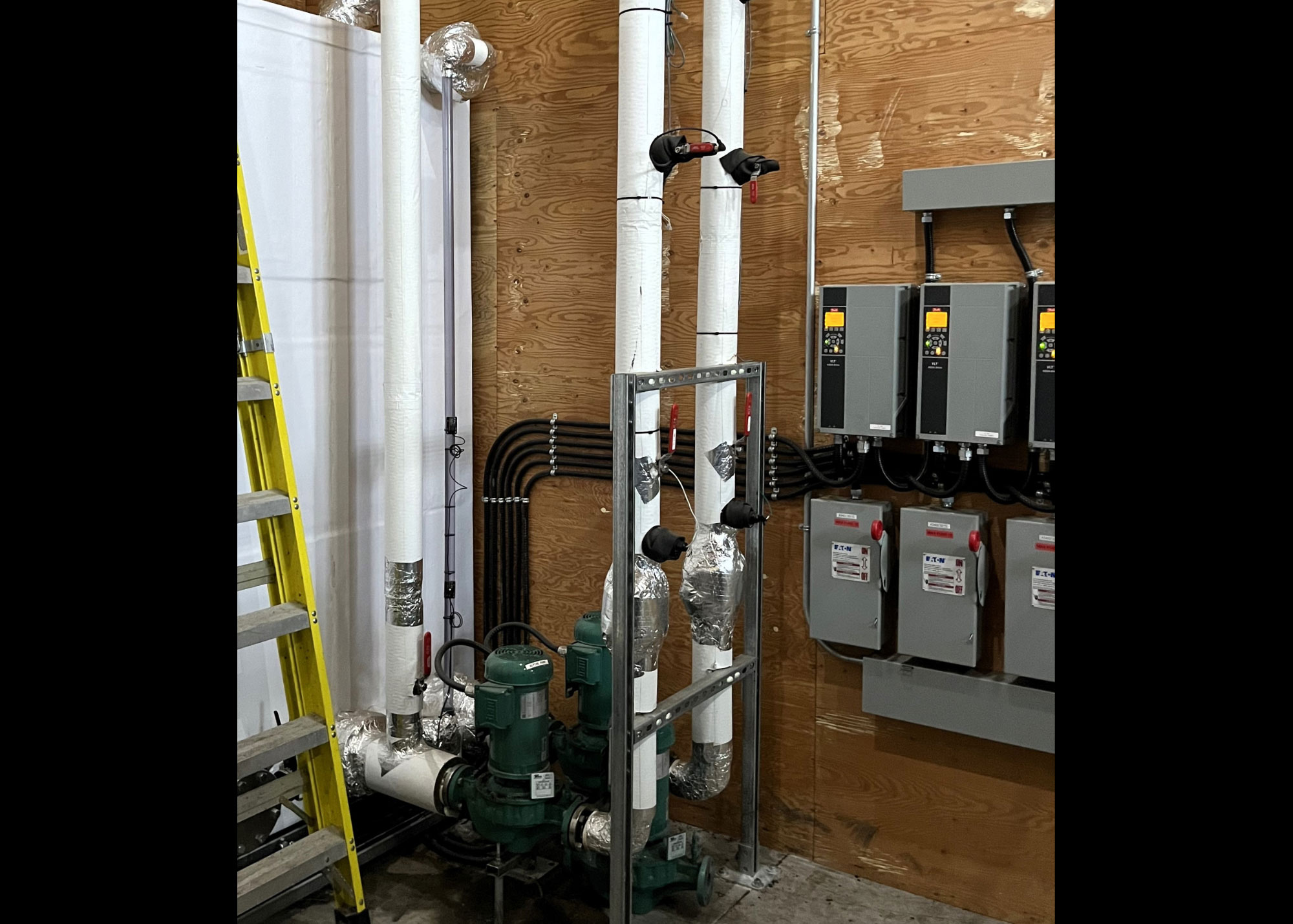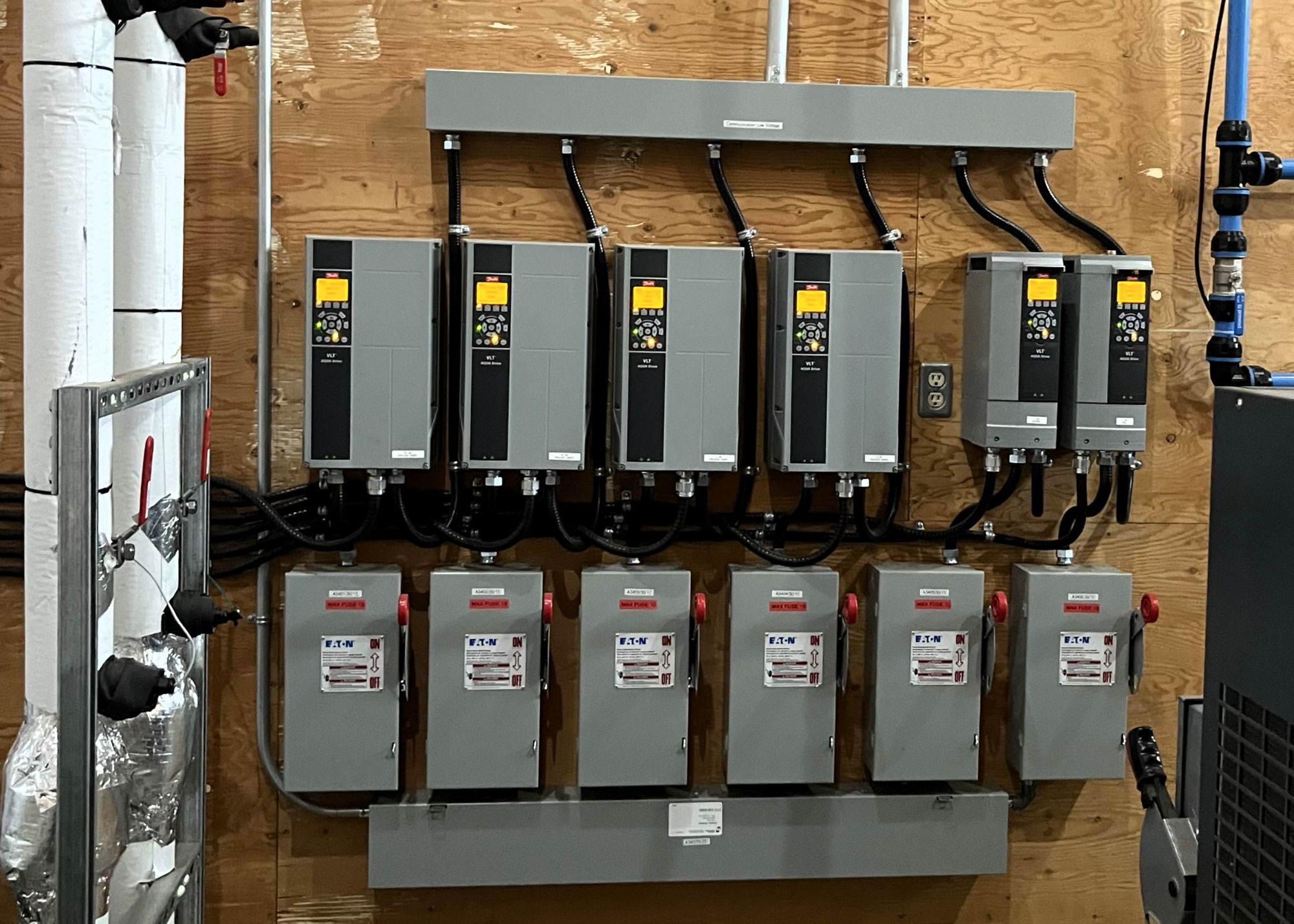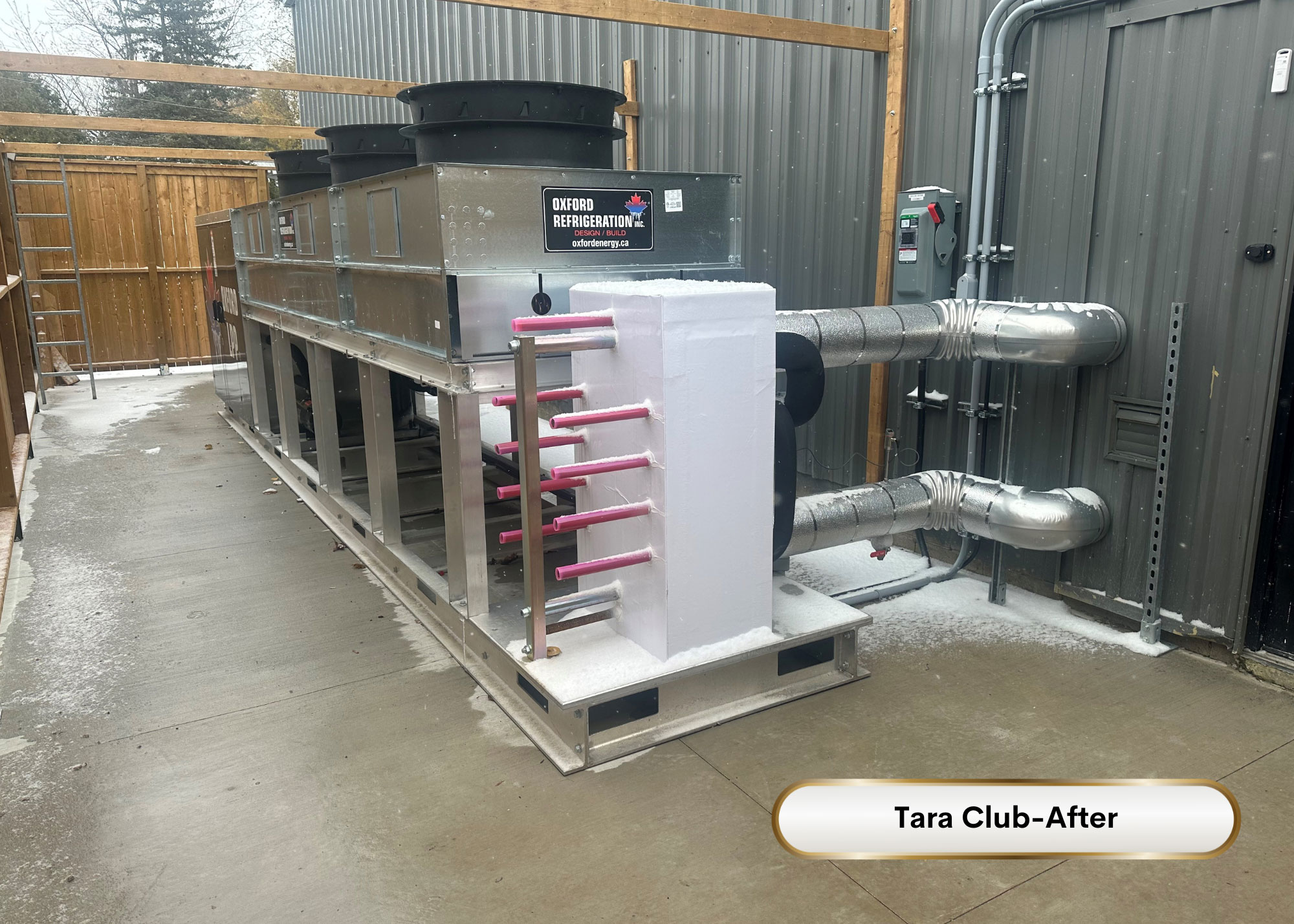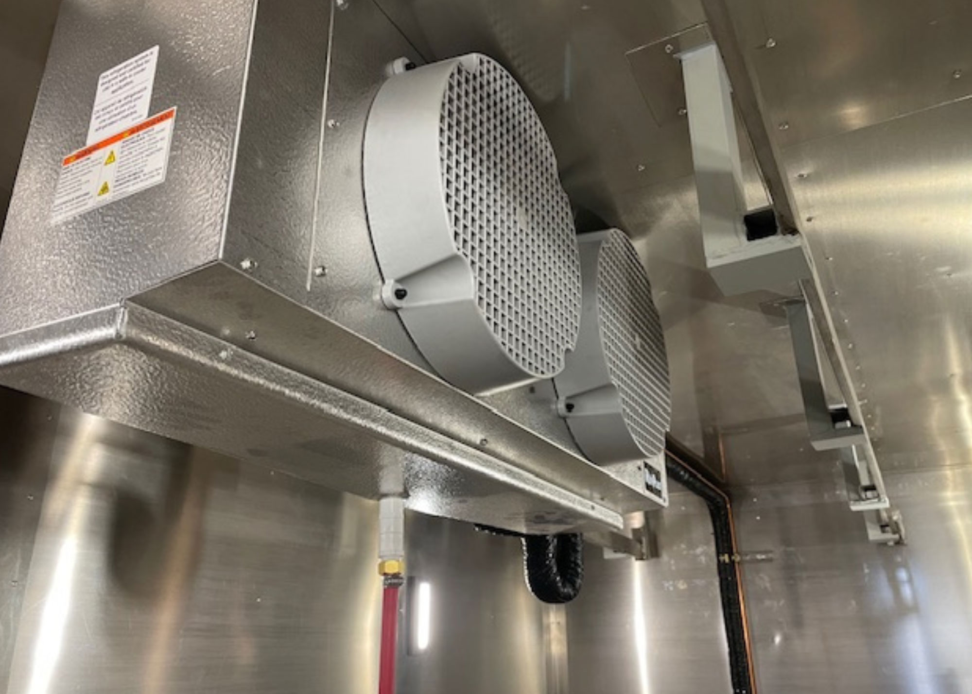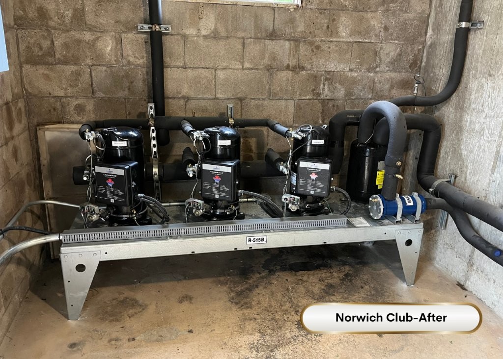 Retrofit of 200hp rack with hot gas defrost and R407C to New system with Electric defrost, High efficiency fan motors and Large horsepower R410A Copeland Scroll compressors with floating head and EXV’s resulting in much more reliable and effecient system. Operating at less that half the previous charge.